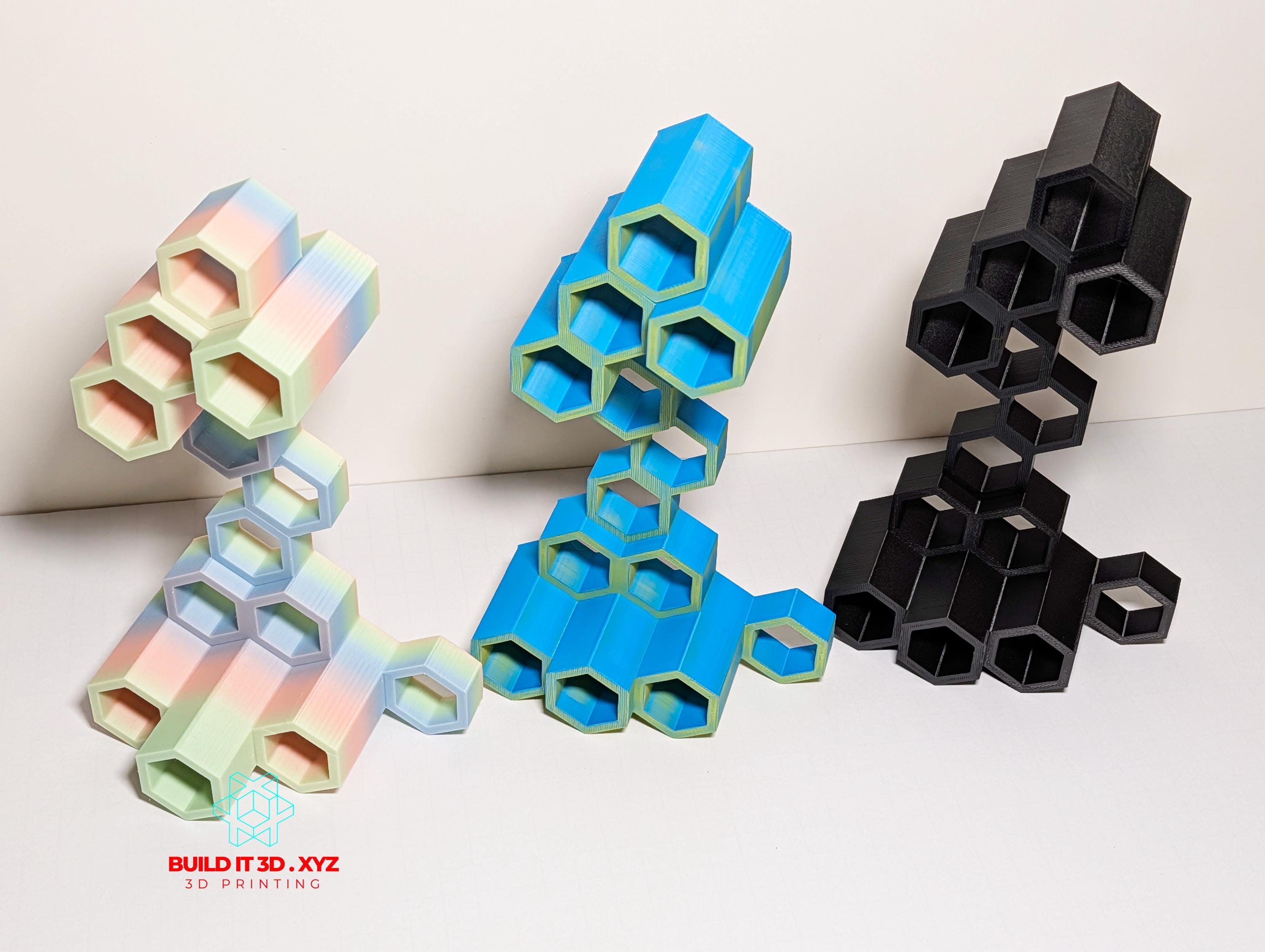 Available Color Options: Option 1: Rainbow Transition (Multi-Color). A vibrant, shifting gradient typically moving through deep blues, vivid reds, and lush greens. Note: Every piece is a "one-of-one." The exact color placement depends on where the filament was in its cycle when the print began, ensuring your stand is unique. Material: PLA